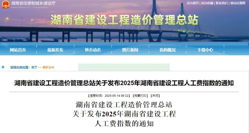注意!2025年湖南省建設工程人工費指數發布,6月1日起執行!